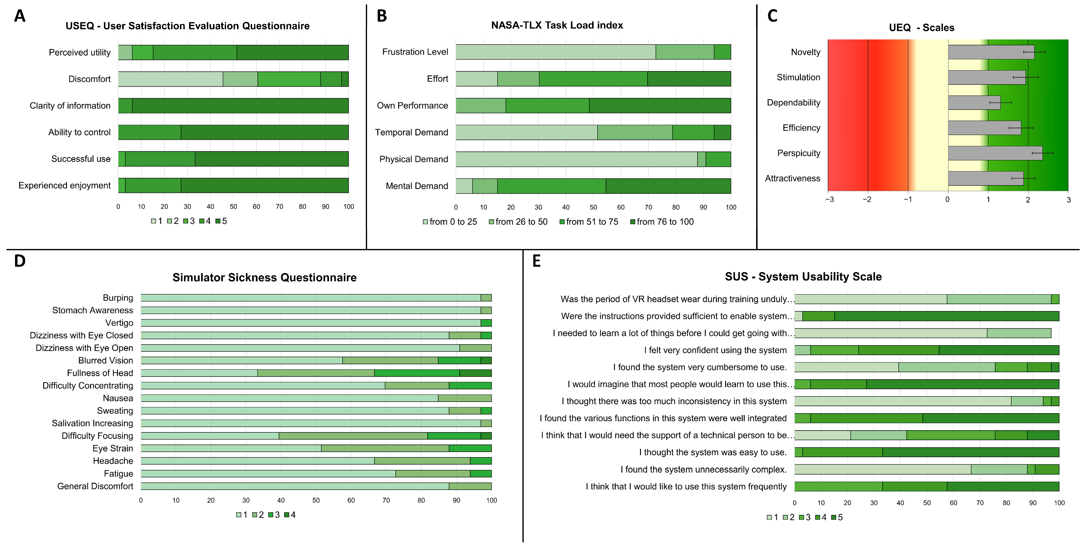 - Gil-Gómez, J.A.; Manzano-Hernández, P.; Albiol-Pérez, S.; Aula-Valero, C.; Gil-Gómez, H.; Lozano-Quilis, J.A. USEQ: A short questionnaire for satisfaction evaluation of virtual rehabilitation systems. Sensors 2017, 17, 1589. [Google Scholar] [CrossRef]