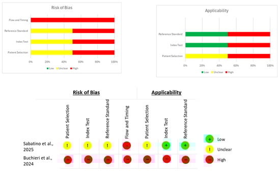 QUADAS-2 evaluation for diagnostic studies. Sources: Sabatino et al. [] and Buchieri et al. [].