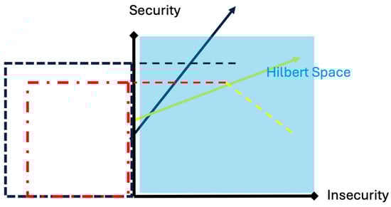 In QC, Hilbert space is a formal metaphor to describe all the possible mental configurations of a subject with respect to a certain content (a decision, a belief, a preference). We can imagine it as a “multidimensional mental space” in which every possible thought, intention, or emotion is represented by a direction. A mental state is a combination of these directions, i.e., a potential configuration of the mind, which can contain multiple alternatives simultaneously. Unlike classical logic, where one thinks of one option at a time, here the mind can “host” multiple possibilities simultaneously, which determines ambivalence, uncertainty, or decision complexity. Every possible thought or intention is a vector in this space, while a mental state is a potential configuration in which multiple vectors coexist simultaneously. This multidimensional representation accounts for the complexity, ambivalence, and uncertainty present in decision-making processes [,].