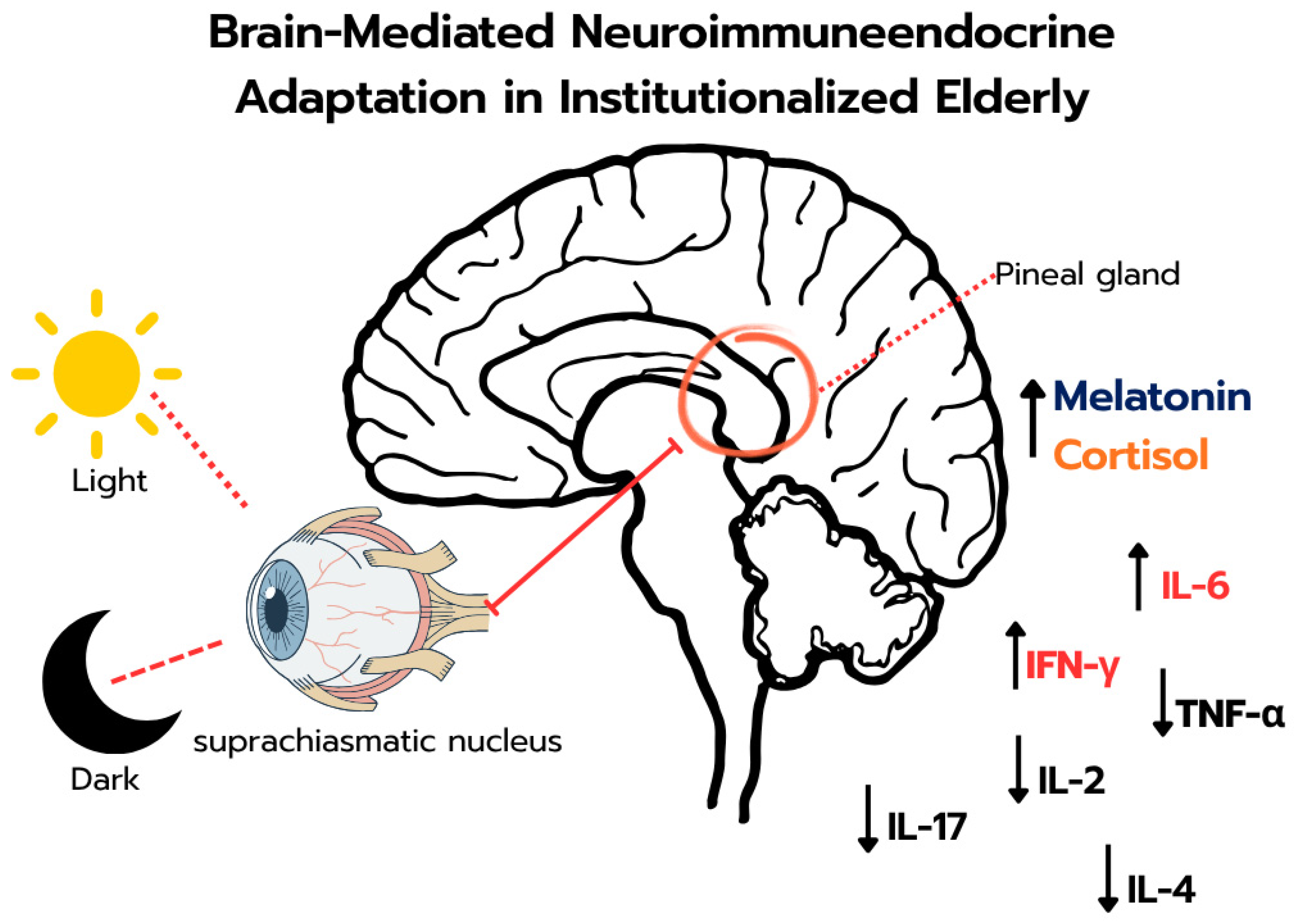 Sfredo AdS, Silva MABd, Melo LVL, França DCH, Dantas GL, Santos WBd, Fagundes-Triches DLG, Marchi PGFd, Honorio-França AC, França EL. Hormonal and Cytokine Imbalances Promote a Proinflammatory Profile in Institutionalized Elderly. Brain Sciences. 2025; 15(12):1310. https://doi.org/10.3390/brainsci15121310