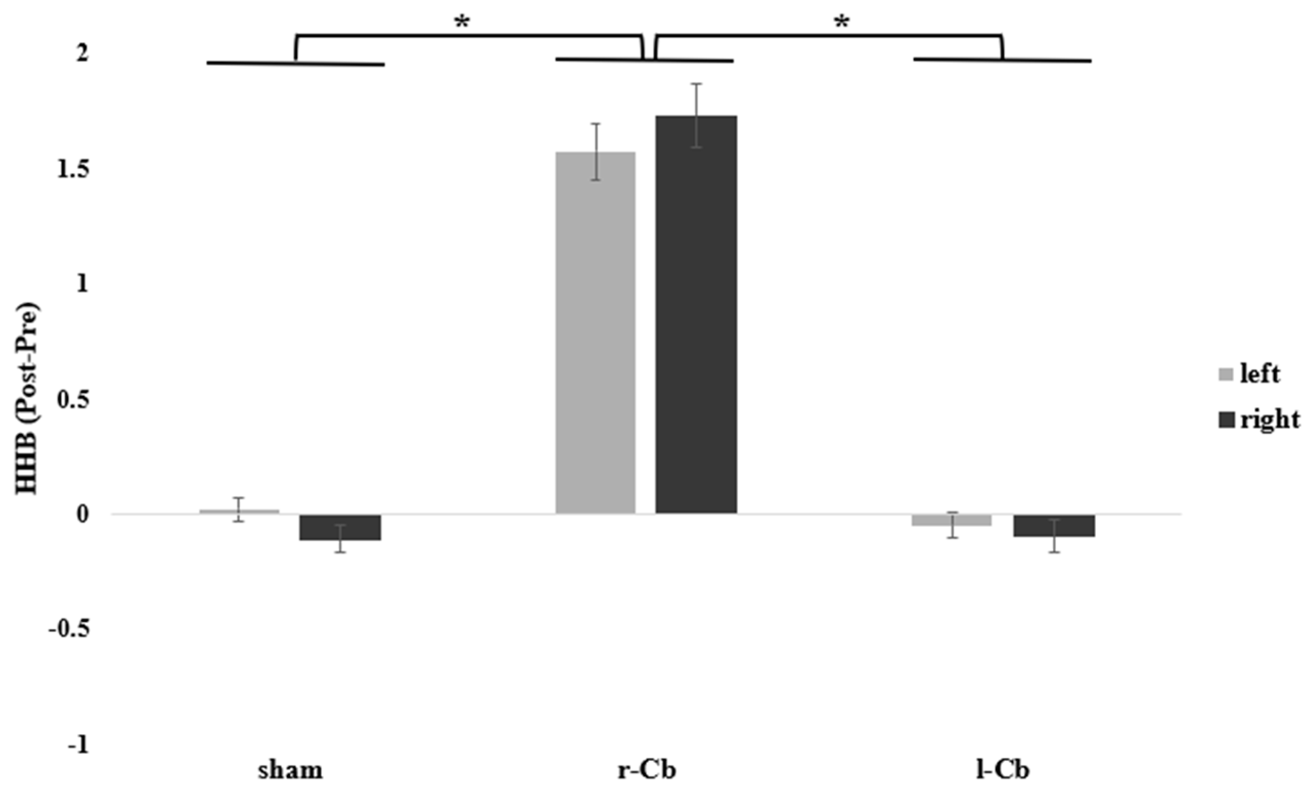 4.1. Behavioural Measures and Effects of Cerebellar Stimulation