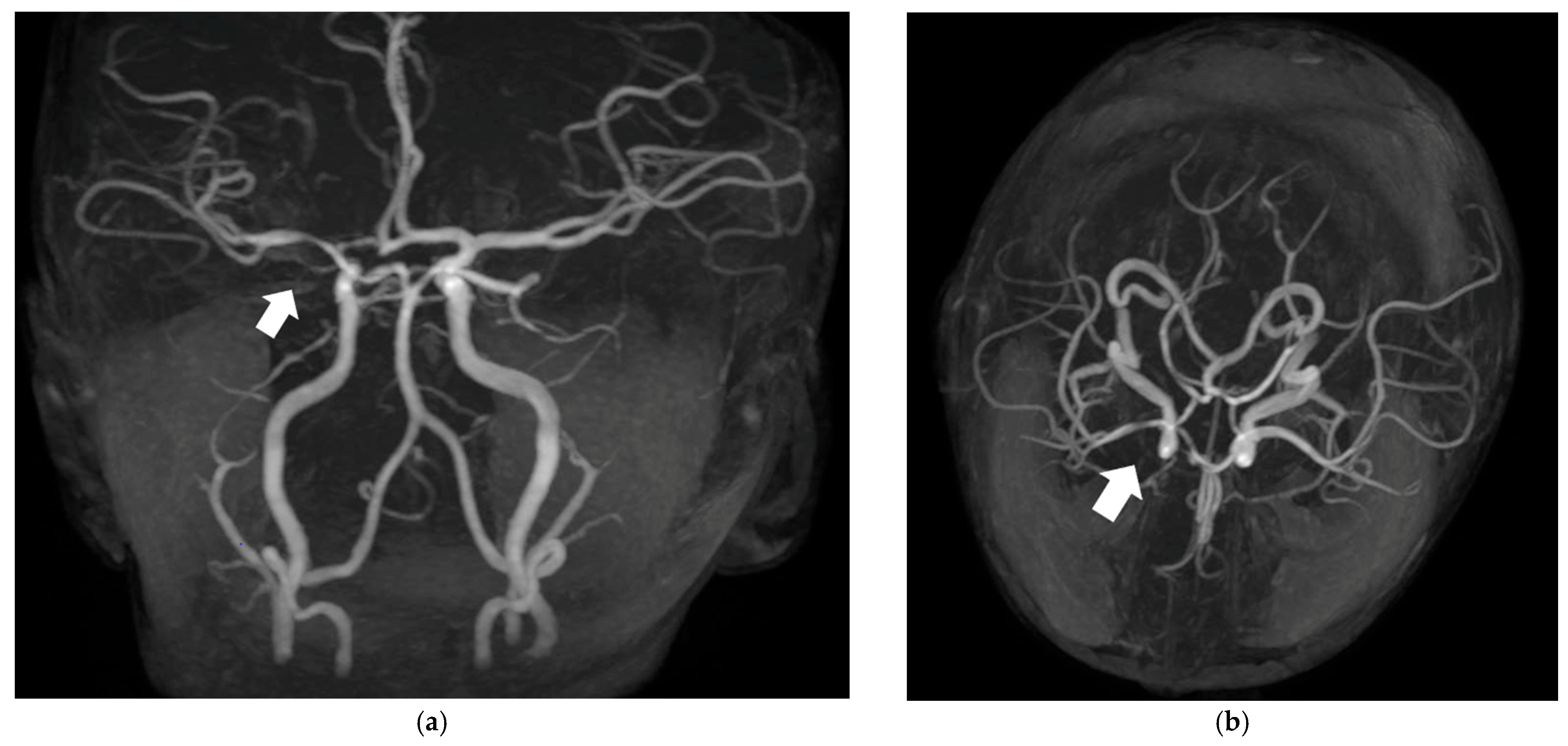 - Kawatani, M.; Nakai, A.; Okuno, T.; Tsukahara, H.; Ohshima, Y.; Mayumi, M. A case of intracranial saccular aneurysm after primary varicella zoster virus infection. Brain Dev. 2012, 34, 80–82. [Google Scholar] [CrossRef]