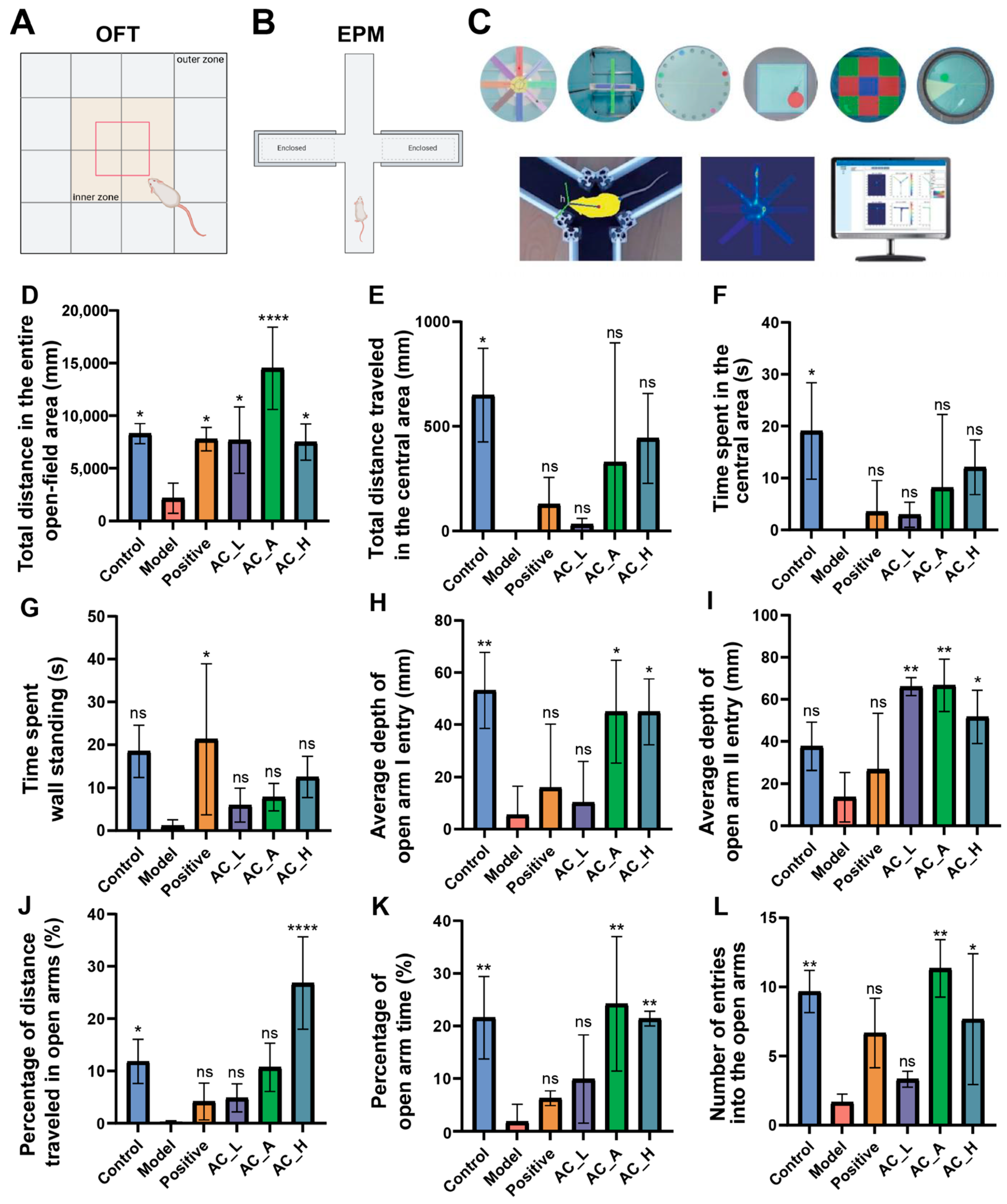 3.1. Alternating Current Electroacupuncture Alleviates PTSD-like Behaviors in Rats