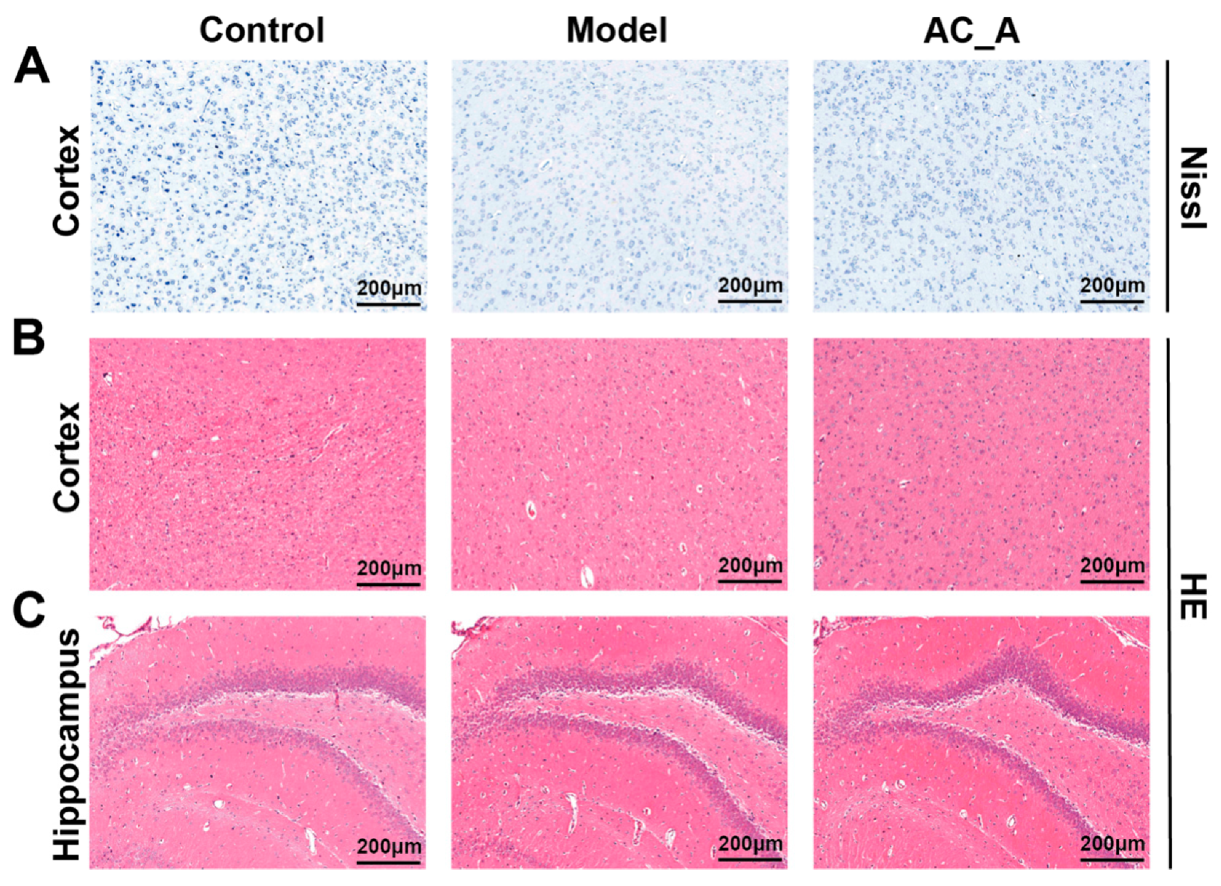 3.2. Histopathologic Staining Assessment of the Effects of AC on the Brain