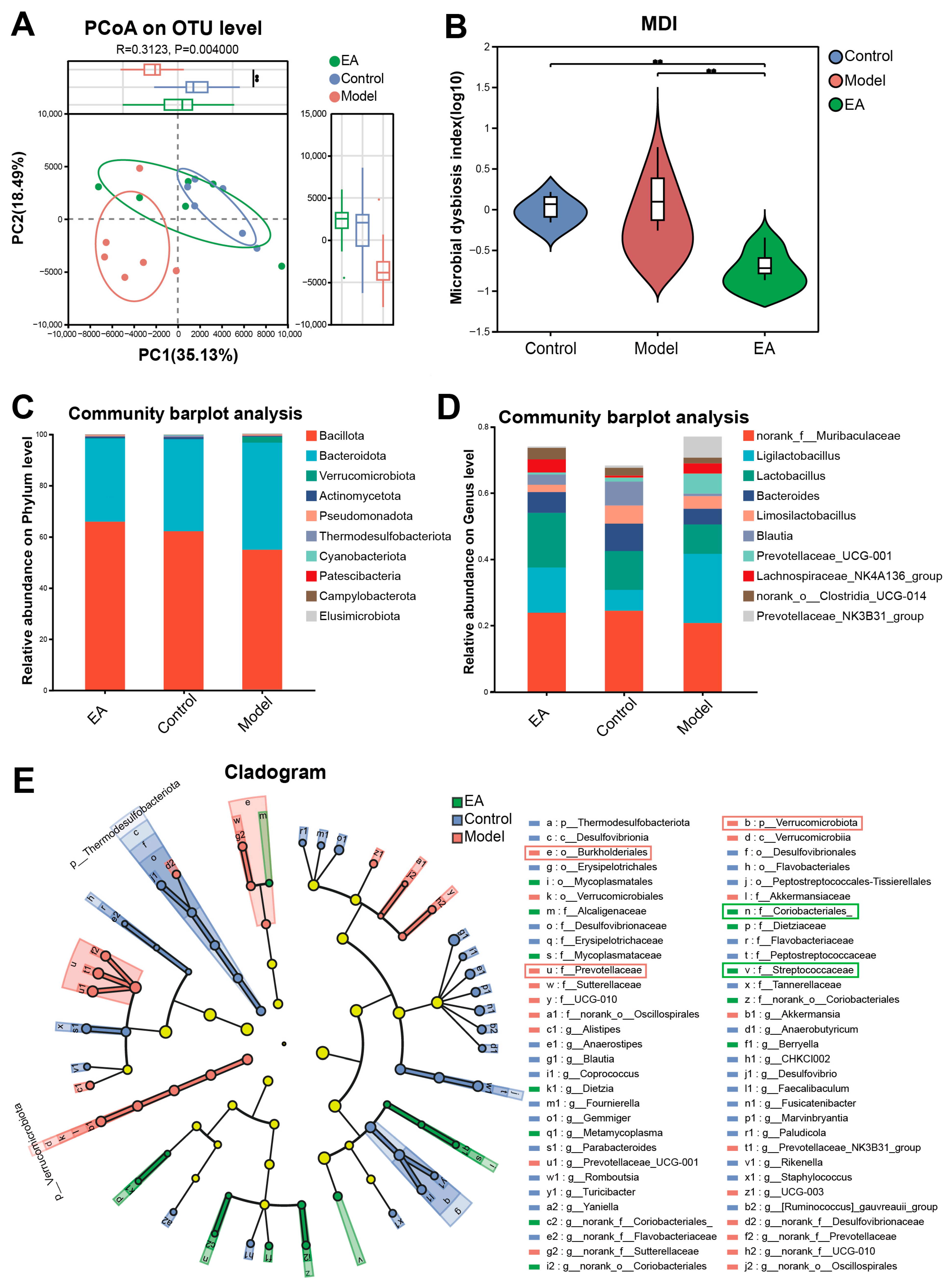 - Wang, J.Y.; Zhu, H.H.; Song, X.K.; Zhao, J.; Zhang, J.L.; Zhang, J.L.; Li, S.Y.; Rong, P.J. Electroacupuncture regulates gut microbiota to reduce depressive-like behavior in rats. Front. Microbiol. 2024, 15, 13. [Google Scholar] [CrossRef] [PubMed]