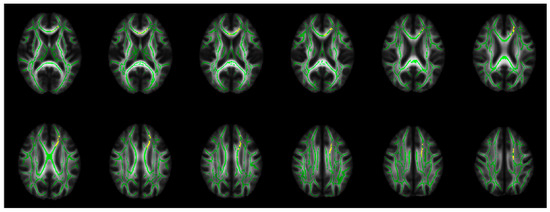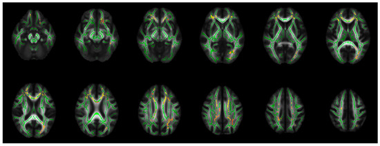 - Jbabdi, S.; Behrens, T.E.; Smith, S.M. Crossing fibres in tract-based spatial statistics. NeuroImage 2010, 49, 249–256. [Google Scholar] [CrossRef]