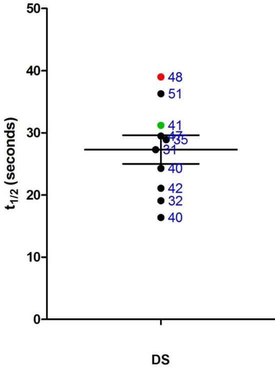 Our findings also correlate mitochondrial dysfunction with cognitive deficits, particularly in memory and executive functions, similar to those observed in Alzheimer’s and other neurodegenerative diseases [,]. This supports the “mitochondrial dementia” concept seen in primary mitochondrial disorders, where energy deficits lead to cognitive decline due to limited synaptic function and plasticity [,]. Our findings of strong correlations between mitochondrial dysfunction and memory and executive function scores align with evidence suggesting that mitochondrial stress in DS could exacerbate deficits in synaptic function, impacting energy-dependent cognitive processes [].