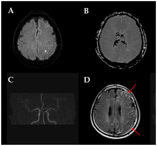 Brain imaging findings are widely recognized as predictors of stroke mechanisms and recurrence in TIA diagnosis, with DWI being a well-established representative marker [,]. However, early DWI may fail to detect hyperintense lesions if they are absent or too small to identify []. Additionally, in cases of TIA caused by reduced cerebral perfusion, a diagnosis based solely on the presence or absence of lesions on DWI can be challenging []. To address these limitations, vascular and perfusion imaging in addition to DWI can be used for diagnosis [].