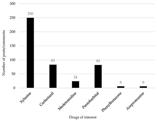 Due to the relatively new emergence of these veterinary medications as adulterants, research needs to be conducted to gain novel and valuable information regarding their misuse and prevalence. This study aimed to employ a social media listening method to retrieve real-life data of user’s thoughts and experiences related to the selected drugs of interest.