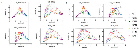 - Parkes, L.; Fulcher, B.D.; Yücel, M.; Fornito, A. Anomalous functional connectivity gradient organization in schizophrenia. Biol. Psychiatry 2021, 89, 817–828. [Google Scholar]