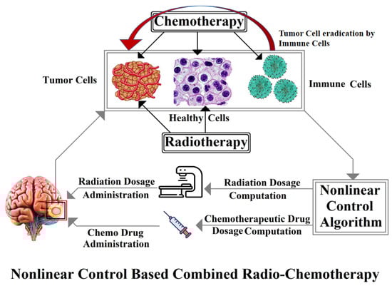 Thus, recent advancements in the field of cancer research emphasize employing a combination of two or more of these anti-tumor treatment plans simultaneously for tumor mitigation [,]. However, these procedures have adverse side effects as they employ dangerous dosages of radiation or anti-cancer drugs, which not only kill cancerous cells but are also harmful for healthy normal cells. Similarly, these treatments also hamper the effectiveness of the human body’s own immune response against cancer cells. It is hence pertinent to develop strategies for the regulation of drug and radiation dosages so that overdosing may be avoided while prioritizing human health and well-being [].