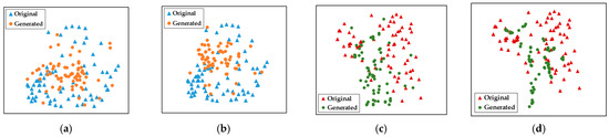 In the default parameter configuration of the proposed GD-TIL, the temporal segments Sn are set to 8 for data augmentation. In MTSFE, the number of temporal and spatial filters for all scales is set to 8 and 2, respectively. The depth of the MHSA block D and the number of attentional heads h are determined as 4 and 8, respectively. These settings are the same as the parameter settings of many reported papers [40]. During training the MTSFE, a maximum of 2000 epochs and a batch size of 64 are set to minimize the total loss function. A default Adam optimizer is applied to optimize the model, with a learning rate of 0.01. The balance coefficient in Equation (8) is empirically given as 0.5. The implementation details of PGGR have been given in Figure 5, where the number and dimensionality of the generated TSFs are the same as new MI tasks. All experiments are conducted on an HP workstation (Shanghai HP Co., Ltd., Shanghai, China) equipped with an 80 GHz Intel® Core™ i7 processor, 80 GB RAM, and an NVIDIA T1000 GPU, and NVIDIA GeForce RTX 3090 GPU, CUDA 10.2 and cuDNN 7605. The model simulation uses Python 3.9 and Pytorch 1.10 in Spyder 5.1.5.