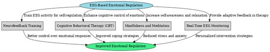 - Cognitive Behavioral Therapy (CBT)—EEG can be used alongside CBT to enhance cognitive control of emotions. Real-time EEG monitoring allows therapists to track neural correlations of emotional regulation and adapt treatment strategies accordingly.