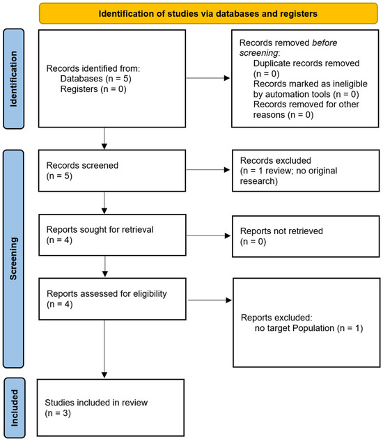The search yielded five articles, including four original research studies [24,25,26,27] and one systematic review [28]. Of those, the study by Momi et al. [27] was excluded as it did not involve the clinical populations of interest. The remaining articles were analysed to extract insights relevant to our hypothesis., focusing on ccPAS’s effects on neuronal plasticity, motor performance, and potential cognitive benefits.