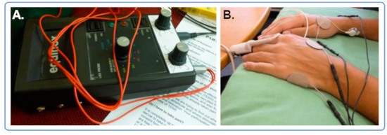 Several studies have demonstrated that peripheral electrical stimulation (PES) induces cortical plasticity in healthy individuals. In one systematic review of stimulation parameters [10], the intensity of PES was found to be the parameter that exerts the strongest effect on the modulation of motor cortex excitability [11,12]. Furthermore, prolonged ES induced more sustained changes in cortical excitability, supporting the time effect of PES. Few studies were found in which the effects of different PES frequencies were compared, so they were less clear-cut [10].