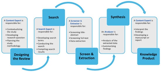 - Khangura, S.; Konnyu, K.; Cushman, R.; Grimshaw, J.; Moher, D. Evidence summaries: The evolution of a rapid review approach. Syst Rev. 2012, 1, 10. [Google Scholar] [CrossRef]