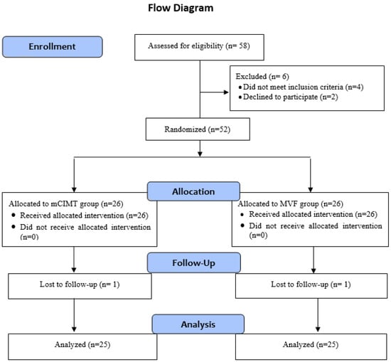 | Variables | mCIMT Group (n = 25) (M ± SD) | MVF Group (n = 25) (M ± SD) | p Value (Between Groups) | Cohen’s d (Effect Size) |