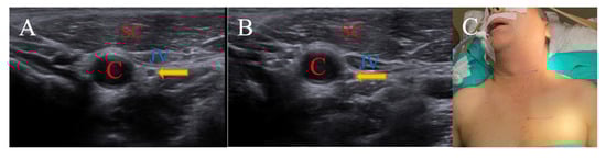 - Sadahiro, H.; Imoto, H.; Sugimoto, K.; Fujii, N.; Nomura, S.; Ishihara, H. Unveiling of vagus nerve anatomical assessment with ultrasonography before vagus nerve stimulation implantation. Neurosonology 2024, 37, 3–7. [Google Scholar] [CrossRef]