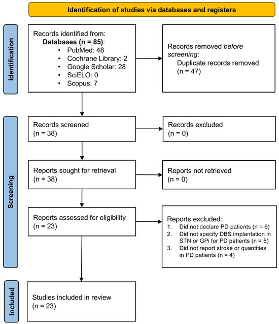 Zarate-Calderon, C.; Castillo-Rangel, C.; Viveros-Martínez, I.; Castro-Castro, E.; García, L.I.; Marín, G. Risk of Cerebrovascular Events in Deep Brain Stimulation for Parkinson’s Disease Focused on STN and GPi: Systematic Review and Meta-Analysis. Brain Sci. 2025, 15, 413. https://doi.org/10.3390/brainsci15040413