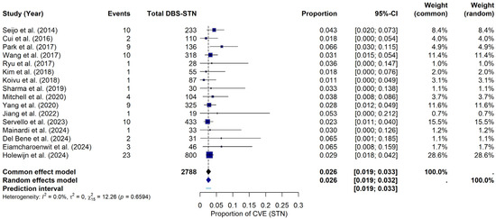 Chicago/Turabian StyleZarate-Calderon, Cristofer, Carlos Castillo-Rangel, Iraís Viveros-Martínez, Estefanía Castro-Castro, Luis I. García, and Gerardo Marín. 2025. "Risk of Cerebrovascular Events in Deep Brain Stimulation for Parkinson’s Disease Focused on STN and GPi: Systematic Review and Meta-Analysis" Brain Sciences 15, no. 4: 413. https://doi.org/10.3390/brainsci15040413