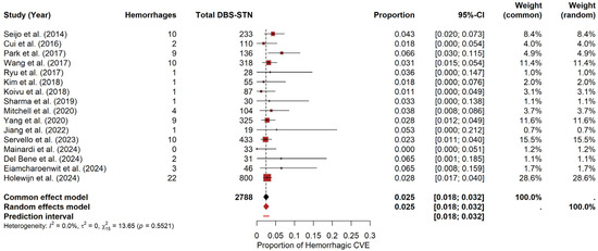 - Tiefenbach, J.; Favi Bocca, L.; Hogue, O.; Nero, N.; Baker, K.B.; Machado, A.G. Intracranial Bleeding in Deep Brain Stimulation Surgery: A Systematic Review and Meta-Analysis. Ster. Funct. Neurosurg. 2023, 101, 207–216. [Google Scholar] [CrossRef]