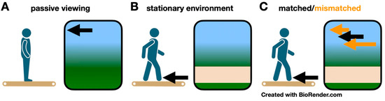 - Salinas, M.M.; Wilken, J.M.; Dingwell, J.B. How humans use visual optic flow to regulate stepping during walking. Gait Posture 2017, 57, 15–20. [Google Scholar] [CrossRef] [PubMed]