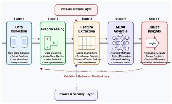 - Actionable insights gap: While smartphones can collect extensive data on fatigue patterns, translating these metrics into actionable clinical interventions remains problematic. Newland et al. [99] found that although continuous monitoring detected fatigue fluctuations in MS patients, clinicians lacked clear guidelines on how to interpret and respond to digital biomarker data in real-time clinical practice.
