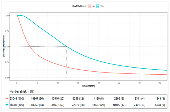 3.5. Overall Survival by Receipt of Combined Surgery, Radiation, and Chemotherapy