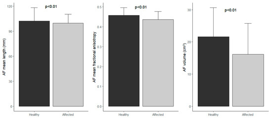 - Thiebaut de Schotten, M.; ffytche, D.H.; Bizzi, A.; Dell’Acqua, F.; Allin, M.; Walshe, M.; Murray, R.; Williams, S.C.; Murphy, D.G.M.; Catani, M. Atlasing Location, Asymmetry and Inter-Subject Variability of White Matter Tracts in the Human Brain with MR Diffusion Tractography. NeuroImage 2011, 54, 49–59. [Google Scholar] [CrossRef] [PubMed]