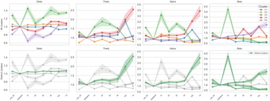 3.3. Temporal Trajectories of Clusters of Subject–Channel Pairs After Treatment