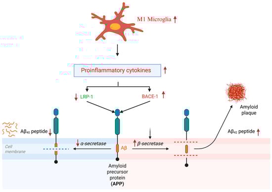 Neuroinflammation and homeostatic processing of APP. ↑ means upregulated, ↓ means downregulated.