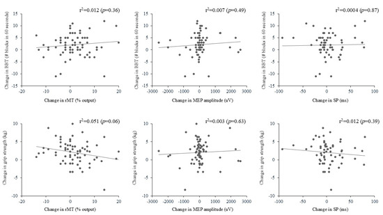 3.3. Association Between Changes in TMS Outcome Measures and Changes in Arm Function