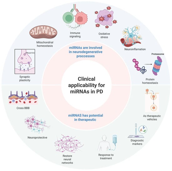 miRNAs are crucial regulators of gene expression, playing a significant role in neuronal survival, synaptic plasticity, and neuroinflammatory processes. In recent years, they have emerged as promising candidates for therapeutic and diagnostic applications in PD, as they can modulate several cellular processes. However, translating miRNA-based strategies into clinical practice is associated with significant challenges, particularly in the targeted delivery of miRNA to the brain and the standardization of biomarkers.