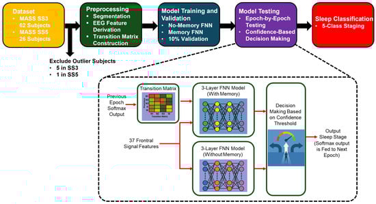 Figure 2 presents a high-level overview of our proposed sleep staging pipeline. It outlines the major stages of the workflow, including data preprocessing, model training (with and without memory), and confidence-based decision-making. This visual summary provides context for the detailed methodology described in the following subsections.