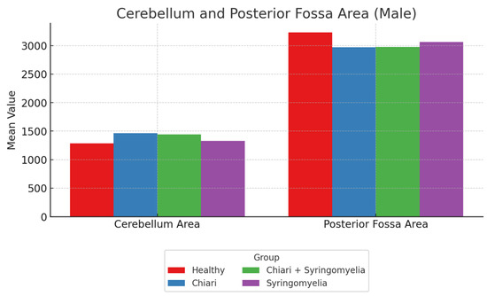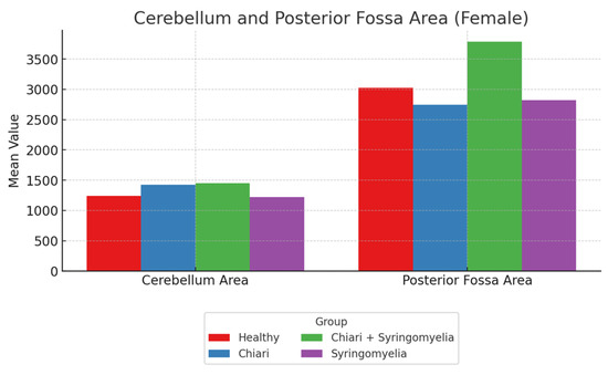 | Posterior Fossa Area | 3231.17 ± 465.48 | 2971.29 ± 300.12 | 2978.95 ± 251.44 | 3065.40 ± 217.21 |