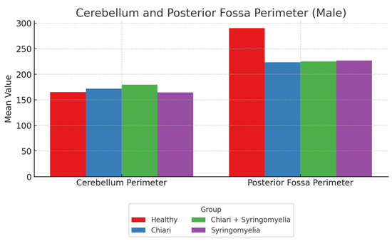 | Posterior Fossa Perimeter | 239.82 ± 13.83 | 223.51 ± 13.38 | 224.97 ± 10.26 | 226.88 ± 15.31 |