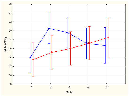 - Krynicki, V. Time trends and periodic cycles in REM sleep eye movements. Electroencephalogr. Clin. Neurophysiol. 1975, 39, 507–513. [Google Scholar] [CrossRef] [PubMed]