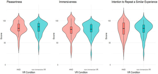 3.1.1. H1: Influence of Different Levels of Immersion on Perceived Immersion, Pleasantness, and Intention to Repeat Similar Experiences