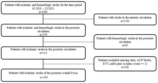 Over a 2-year period, 514 patients with stroke in the posterior circulation were isolated; of those, 186 remained for the final analysis.