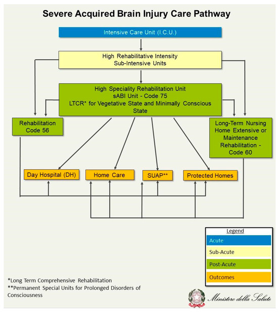 Comparatively, the image below, developed and published by the Italian Health Ministry [6], describes the Italian system of care for severe ABI (see Figure 2).