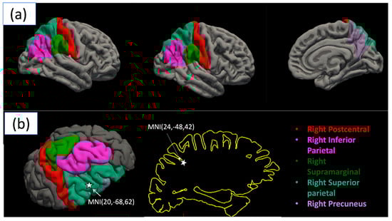 - Numssen, O.; Bzdok, D.; Hartwigsen, G. Functional specialization within the inferior parietal lobes across cognitive domains. eLife 2021, 10, e63591. [Google Scholar] [CrossRef] [PubMed]