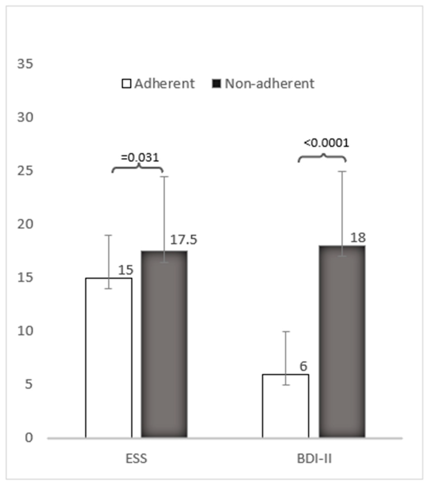 1). Differences between the adherent and non-adherent patients are reported in
