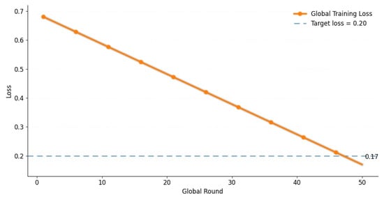 Table 7, provided. All experiments were executed on an NVIDIA A100 GPU cluster (NVIDIA Corporation, Santa Clara, CA, USA) and employed secure aggregation protocols based on a federated ring topology, ensuring communication privacy and resilience to adversarial inference.