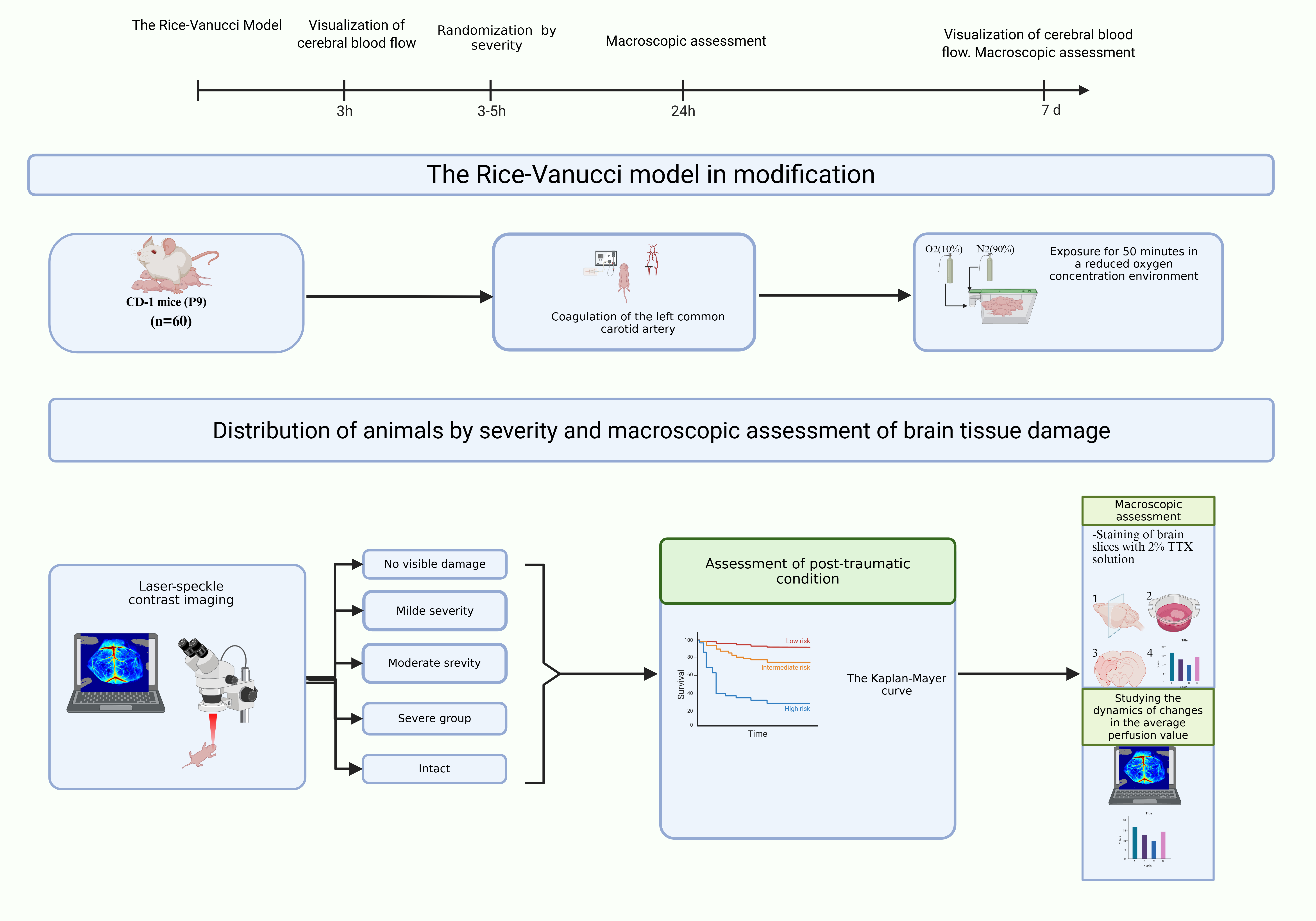 Pokrovskii V, Lapin K, Antonova V, Korokin M, Gudyrev O, Gureev V, Korokina L, Scheblykina O, Nesterov A, Maslinikova M, et al. Use of Laser Speckle Contrast Imaging for Distribution of Animals by Severity of Brain Tissue Damage in a Neonatal Hypoxia-Ischemia Model in Mice. Brain Sciences. 2026; 16(1):102. https://doi.org/10.3390/brainsci16010102