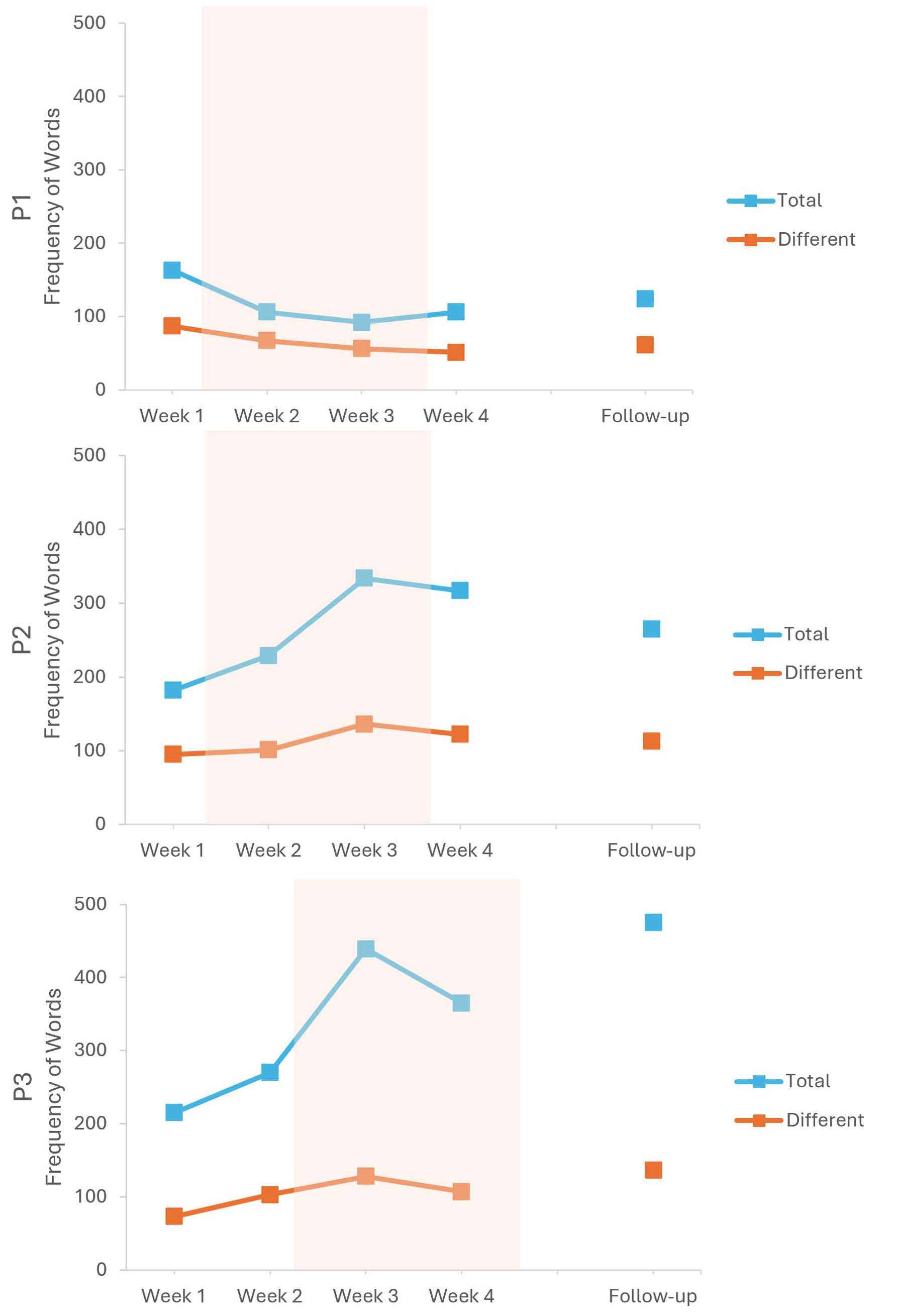 | Participant 1 week 2 | Score = 38 Very vague and hesitant (“I think that’s what’s that”). Reversal of who asks to switch jobs. Almost no descriptive detail or structure. | Score = 46 Emphasizes communication in general terms. Responses trail off and lose coherence. Logical connections are weak and incomplete. |