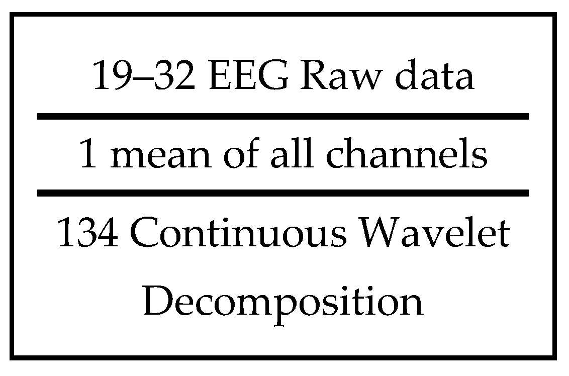 Figure 3, with data framed and appended with the wavelet decomposition. The resulting data frame contained 19 raw EEG data alongside an arithmetic mean and a total of 134 additional wavelet features.