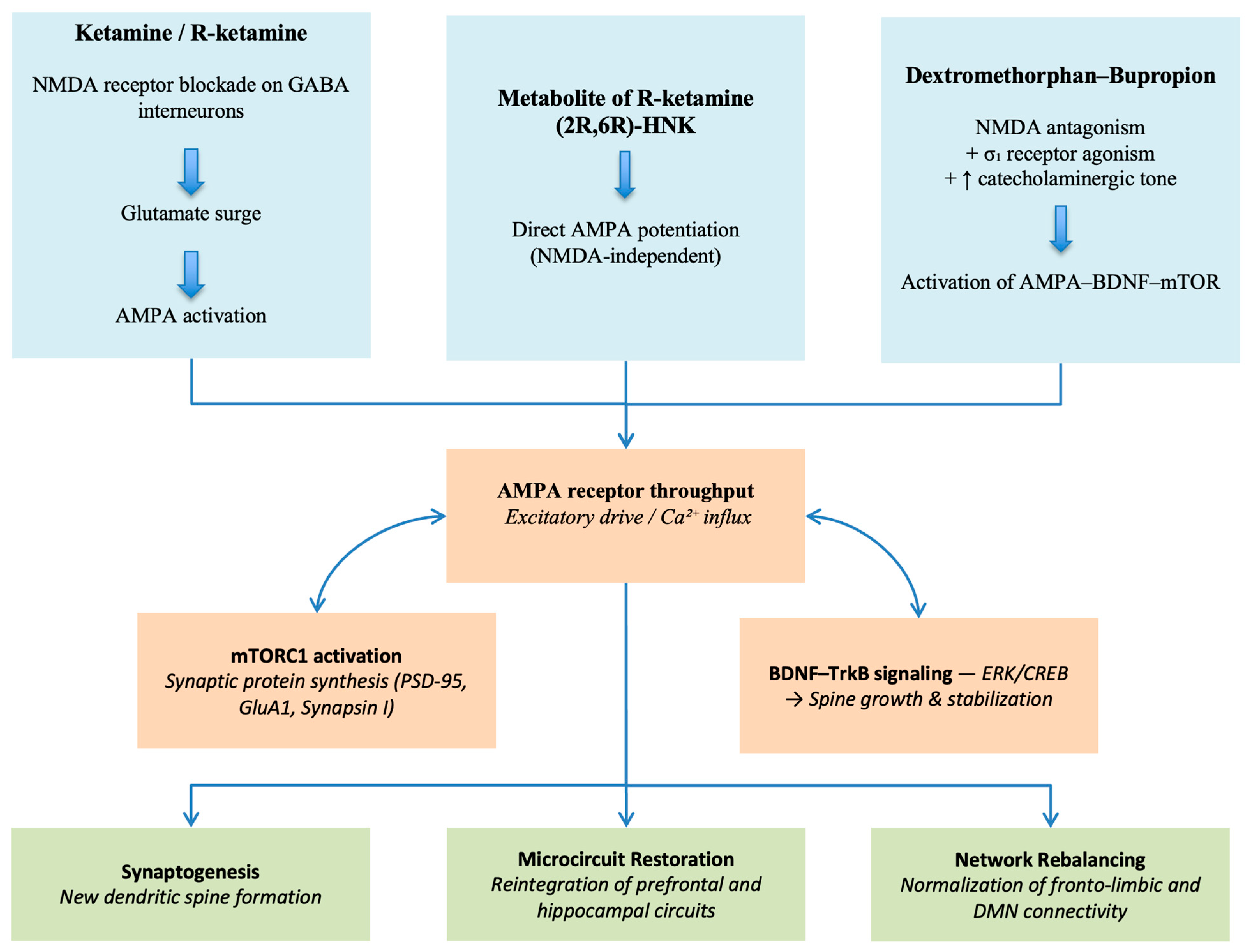 - Cornwell, B.R.; Salvadore, G.; Furey, M.; Marquardt, C.A.; Brutsche, N.E.; Grillon, C.; Zarate, C.A. Synaptic potentiation is critical for rapid antidepressant response to ketamine in treatment-resistant major depression. Biol. Psychiatry 2012, 72, 555–561. [Google Scholar] [CrossRef]
