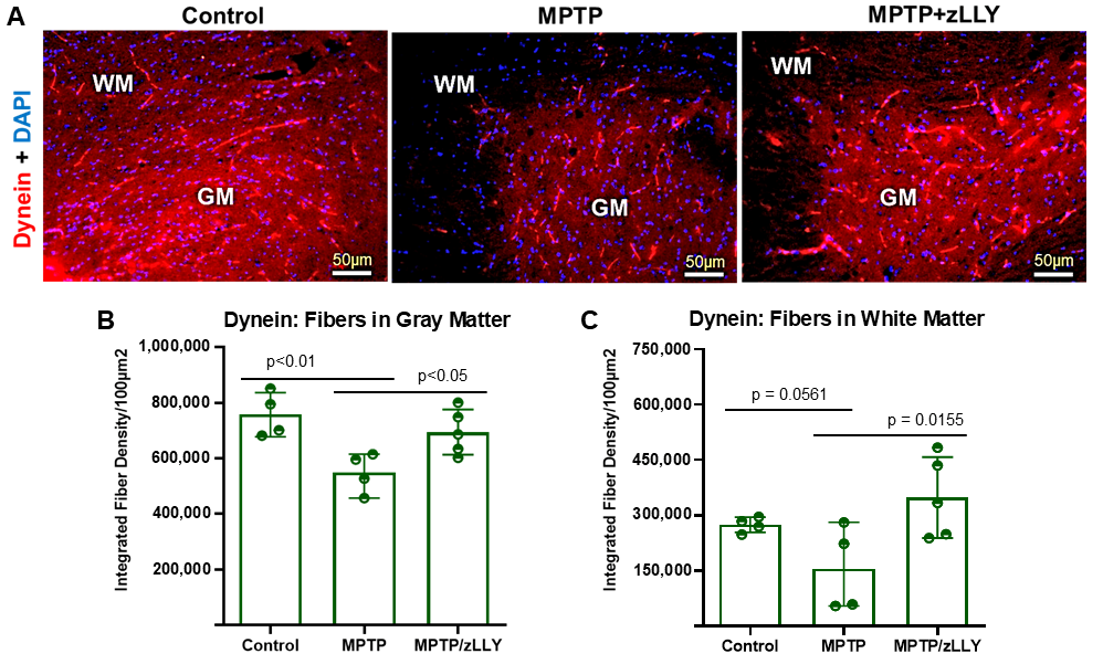 3.5. Dynein Fiber Density Is Reduced by MPTP and Preserved by zLLYCH2F Treatment