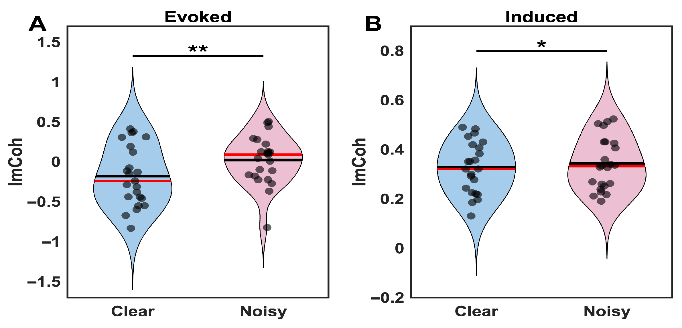3.2.1. Connectivity Decomposition: Evoked vs. Induced Components