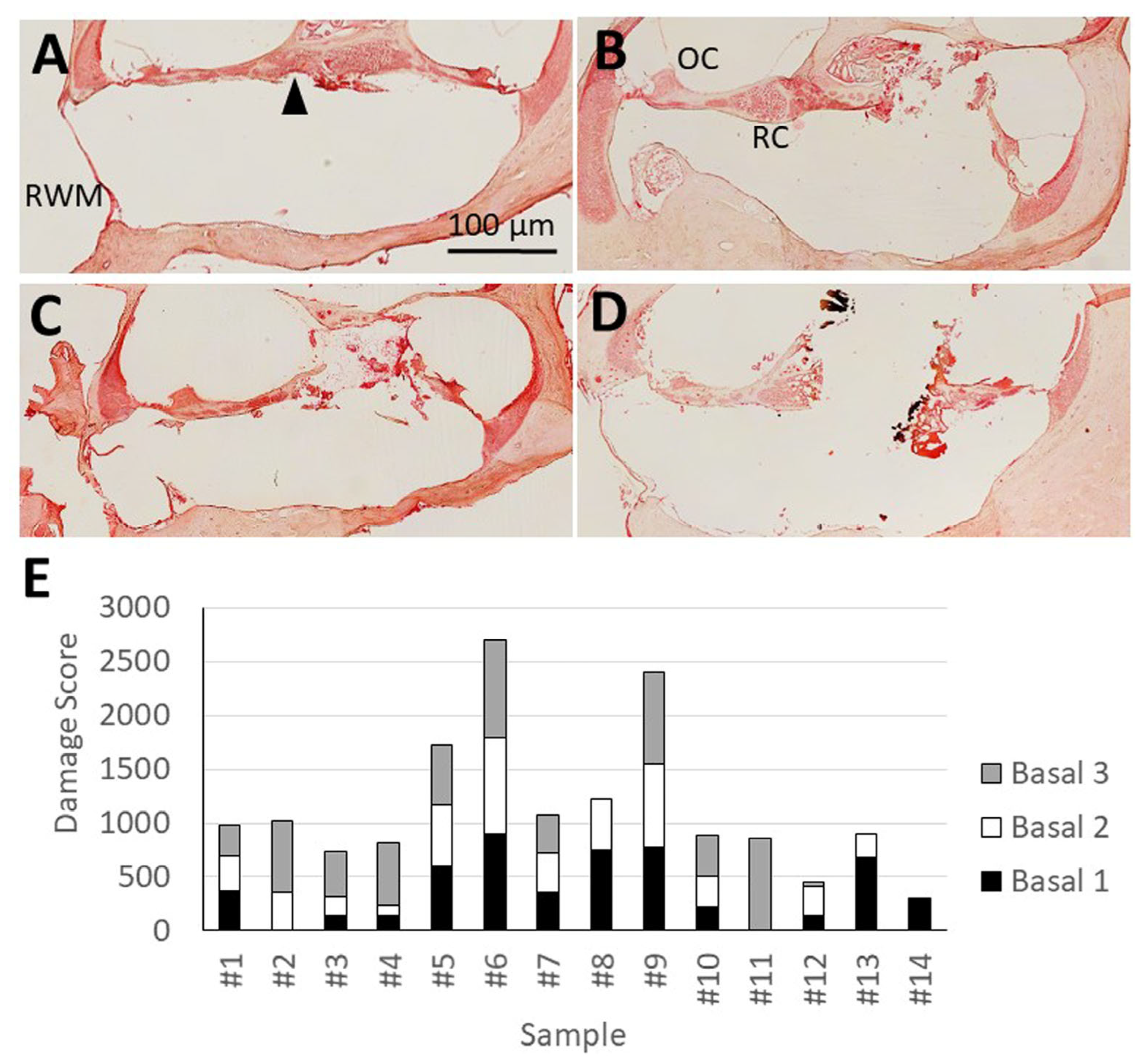 4.7. Shifts in the Efficiency Index Correlate with Damage Score in the Basal Modiolus